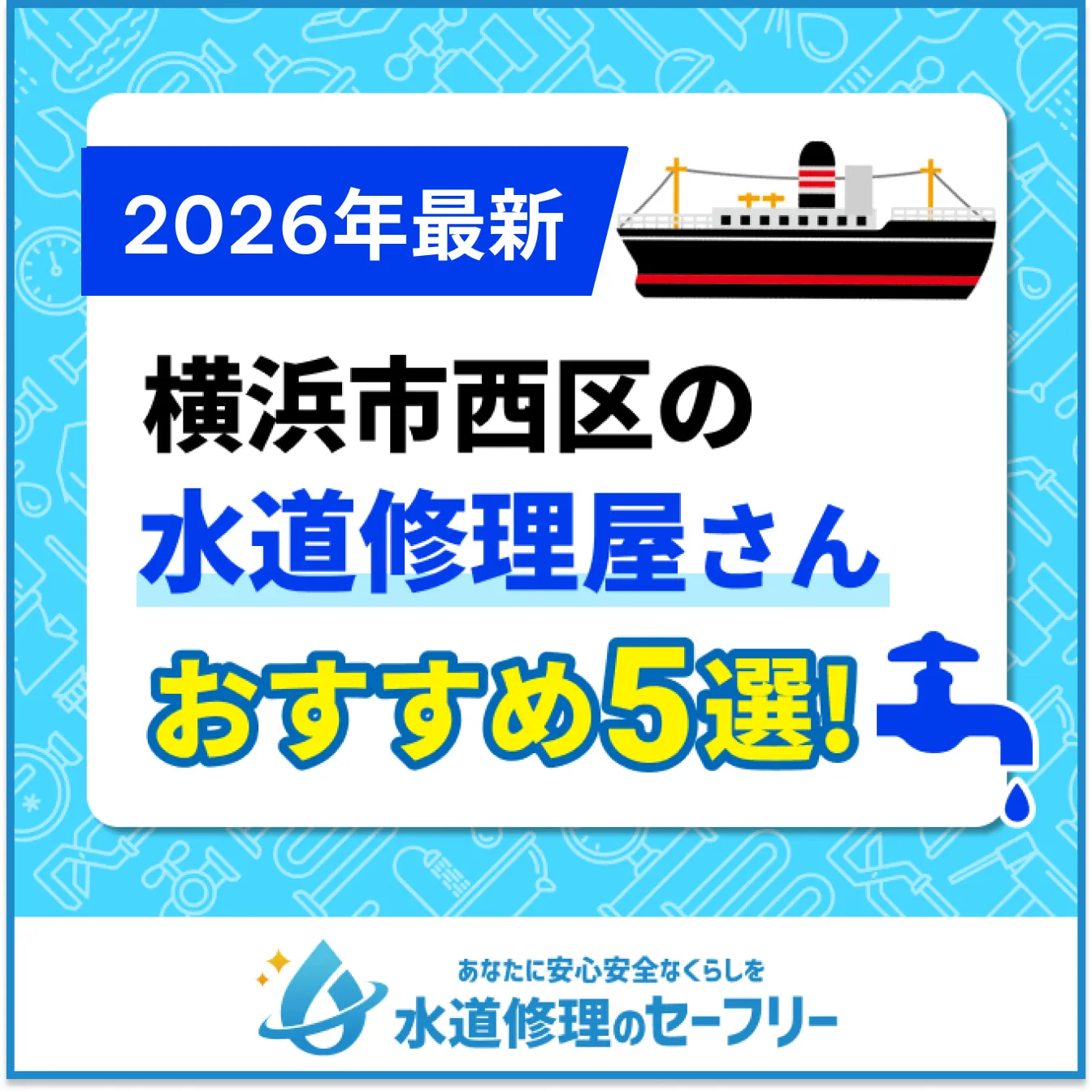 そこで今回は、横浜市西区でおすすめの水道修理業者を5社に絞ってまとめました。多くの人が気にする6つのポイント、口コミをもとに厳選したので、スムーズに業者を選べるはずです。