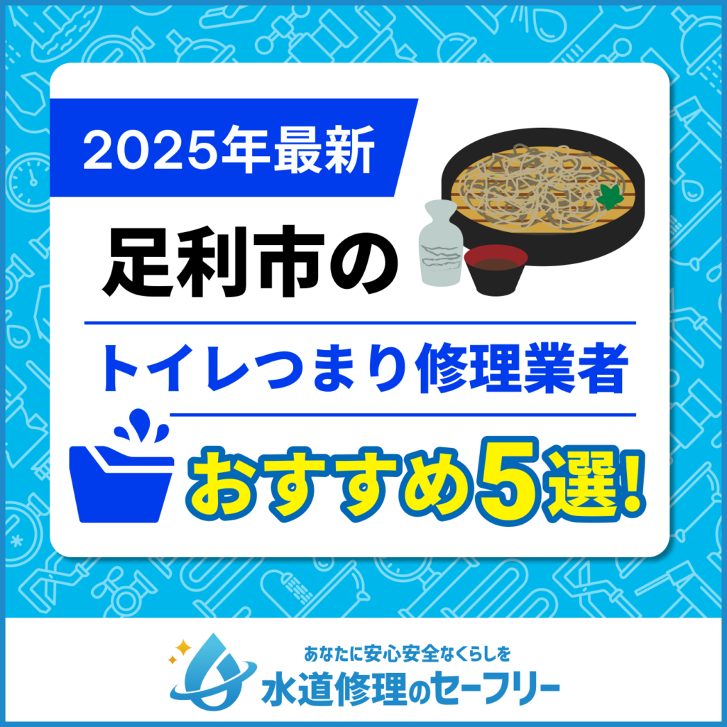 足利市でおすすめのトイレつまり修理業者を、5社厳選して紹介しました。信頼できる修理業者を選んでいますので、トイレつまりでお困りの方はチェックしてみてください。