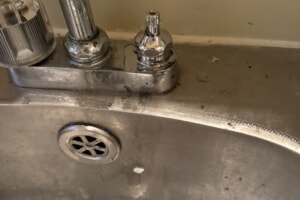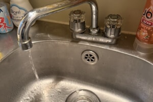 洗い物後のシンクの水が流れず、溜まってしまいます。