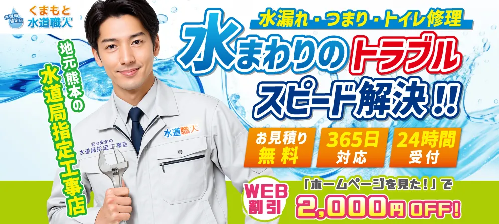 くまもと水道職人は水道局指定工事店ですので、幅広い水回りのトラブルに対応できます。