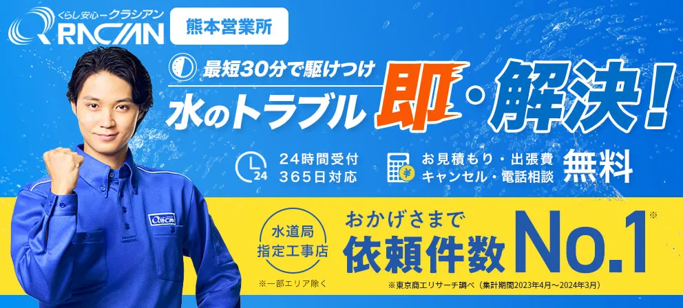 お客様の抱える水まわりのトラブルは、トイレのつまりや水漏れ・お風呂や排水口のつまりや臭いなど様々です。 そんな時はまずクラシアンにお電話ください!24時間受付・365日対応でお客様の水まわりのトラブルに対応致します。 クラシアンでは電話相談、お見積り・出張費や水まわりの点検は全て無料ですので、お気軽にご連絡ください。