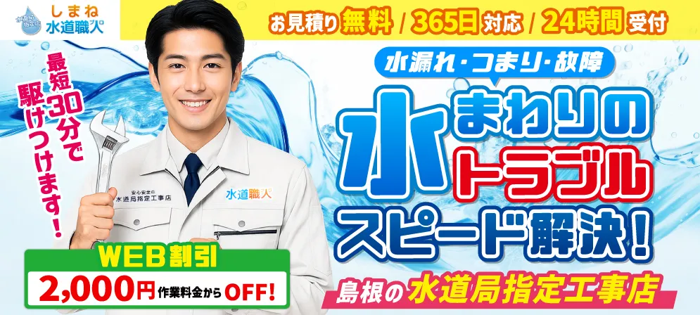 しまね水道職人では、島根県内全域での水回りトラブルに対応しております。