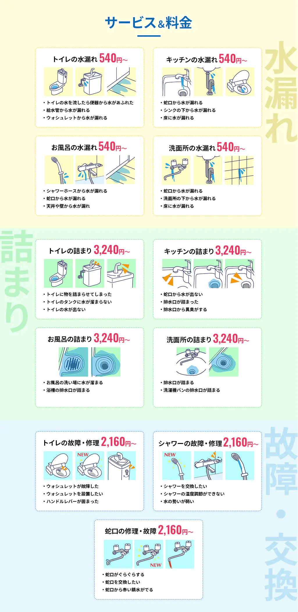 作業料金 作業料金 水漏れ540円~