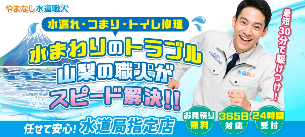 やまなし水道職人は、山梨県全域で起こる水のトラブルに365日対応しております。