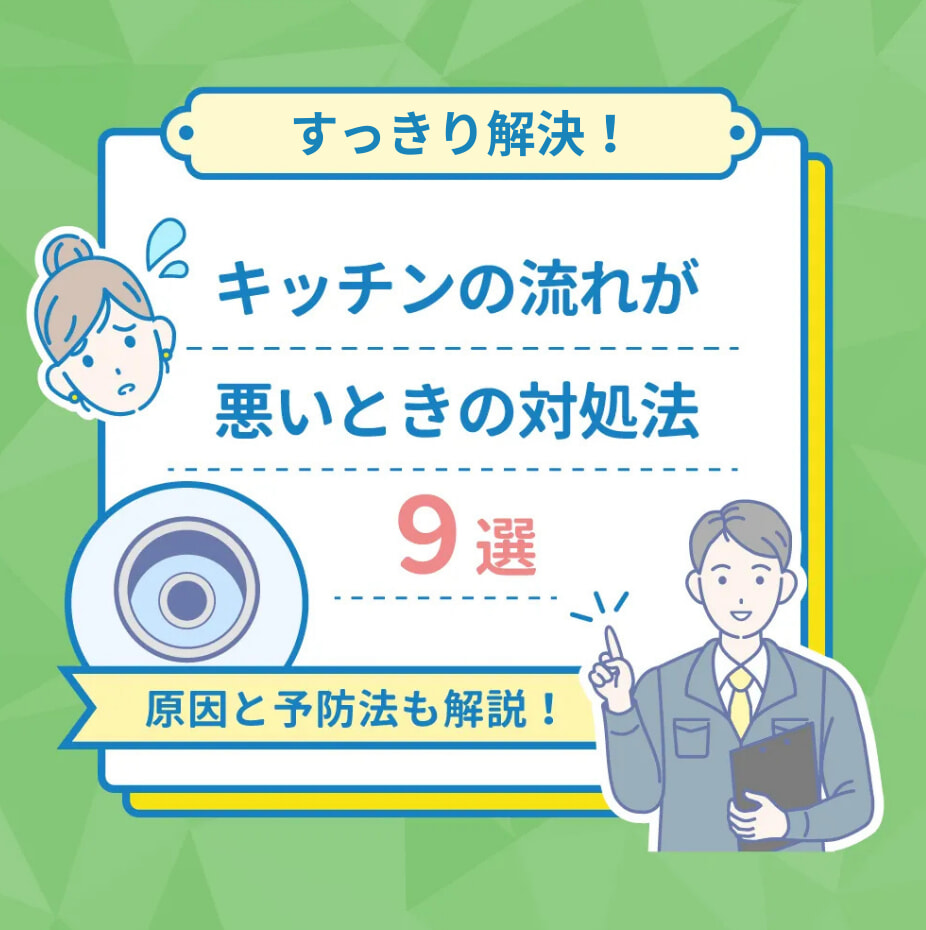 キッチン排水溝に異常を感じたら、まずは状況を確認して原因の特定に努めましょう。原因が特定でたら、本記事でご紹介した方法を参考に対処してみてください。