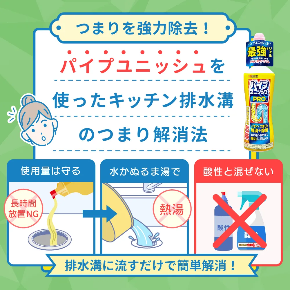 排水管の汚れにおすすめのパイプユニッシュは、台所のつまりにも有効です。ただし、使い方を正しく知っておくことが大切。