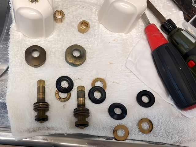 古いタイプの蛇口は、製造中止や型式変更で部品が手に入らない場合が多く、自分で部品を用意できないケースが多々あります。用意できたとしても、内部が固着して動かない、などのハードルが高くなりがちなので、無理に作業せず専門業者に依頼しましょう。