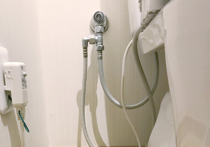 タンク式トイレの場合は、便器の後ろ側にある給水管の接続部分や床などから伸びている給水管との接続部分に設置されているのが一般的です。