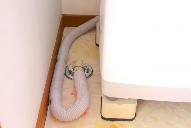 排水ホースと排水口の接続部分がゆるんでいると、排水時の水流によって隙間から水が漏れ出します。