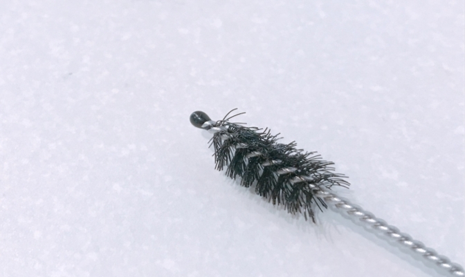 - 手ごたえが軽くなったら引き抜き、ブラシ先端の汚れを拭き取る